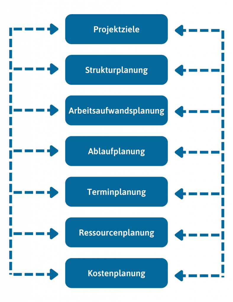 Die Projektplanung sorgt dafür, die Projektziele unter Berücksichtigung von Zeit, Kosten und Ressourcen erreicht werden.