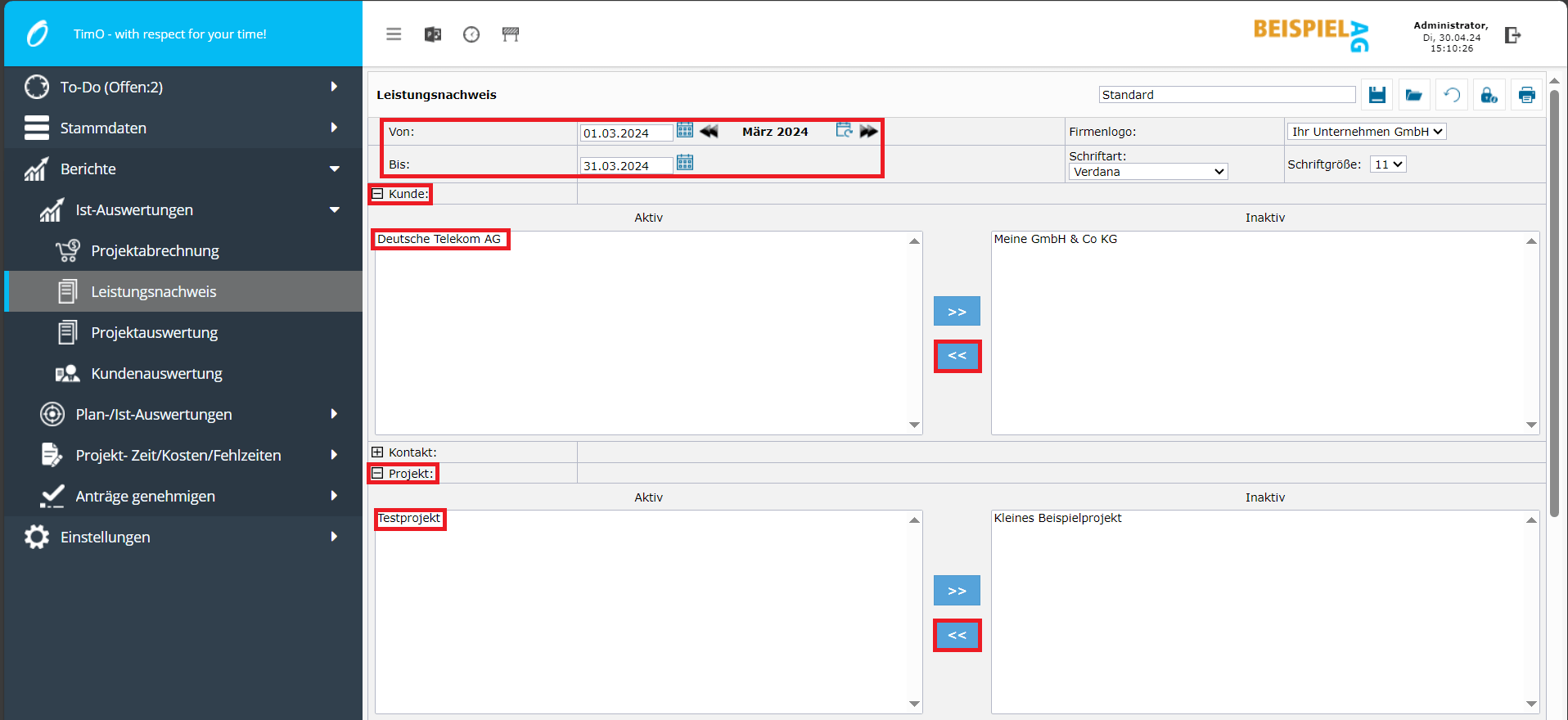 • Berichte – Ist-Auswertungen – Leistungsnachweis