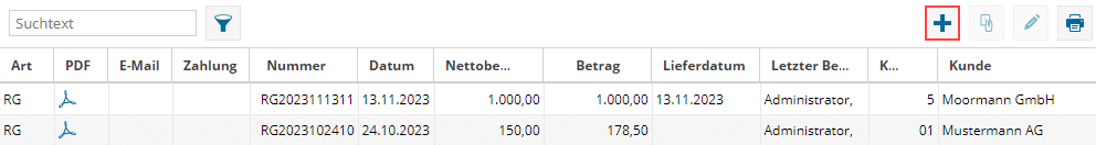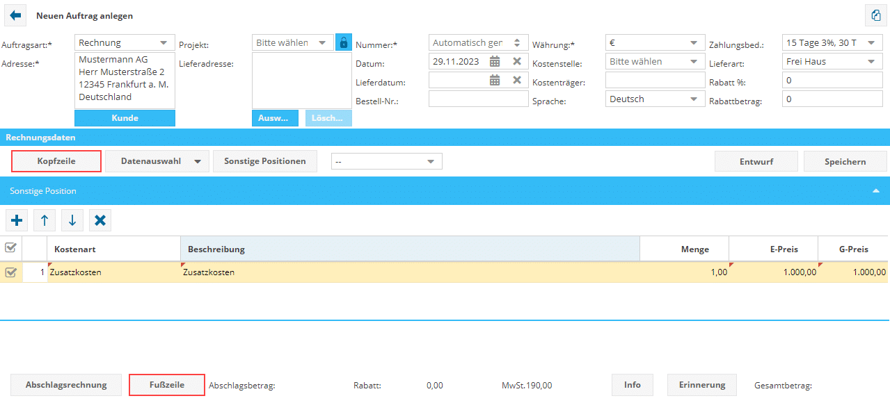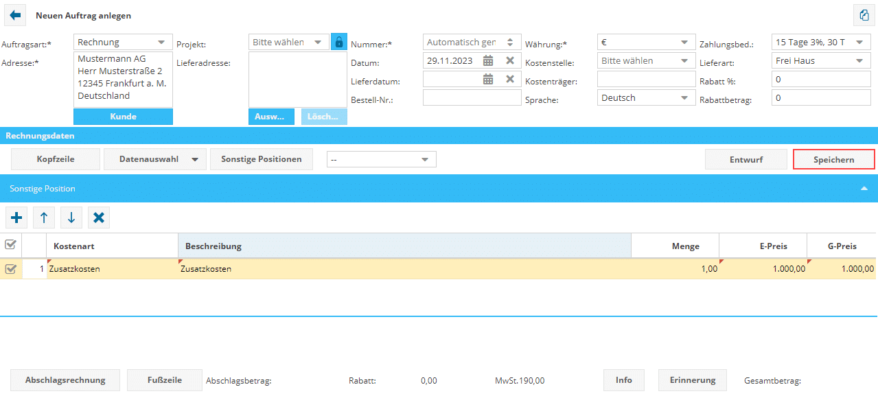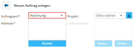 Wählen Sie danach die Auftragsart “Rechnung” aus.
