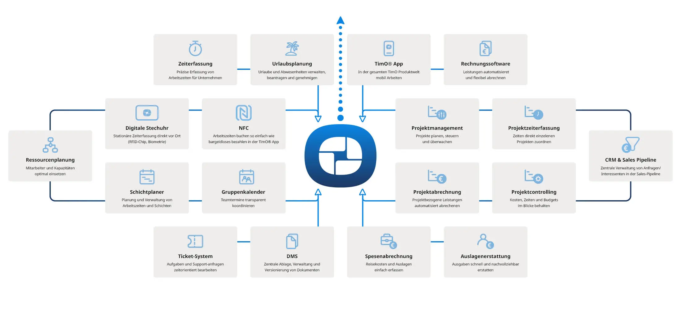Sie nutzen TimO genau so, wie es zu Ihren Anforderungen passt: als einzelnes Modul oder als vollständig integrierte Gesamtlösung.