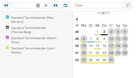 Durch cleveres Rechtemanagement steuern Sie den Zugriff auf einzelne Kalender. Für große Aufgabenpakete und Kundenprojekte bietet das Tool die Möglichkeit Sonderkalender einzurichten die nur von berechtigten Mitarbeitern genutzt werden. So gewährleisten Sie Transparenz im Projektkalender und steuern durch die ausgewählte Freigabe das gemeinsame Arbeiten.